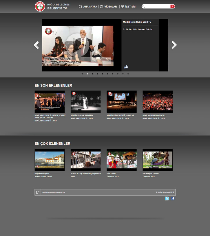 Muğla Belediyesi için, belediye aktivitelerini, Belediye Başkanı'nın mesajlarını ve önemli duyururuları internet ortamından yayınlayabileceği web tv tasarlayıp, uyguladık.